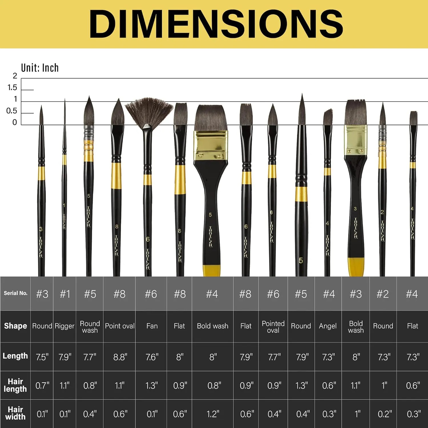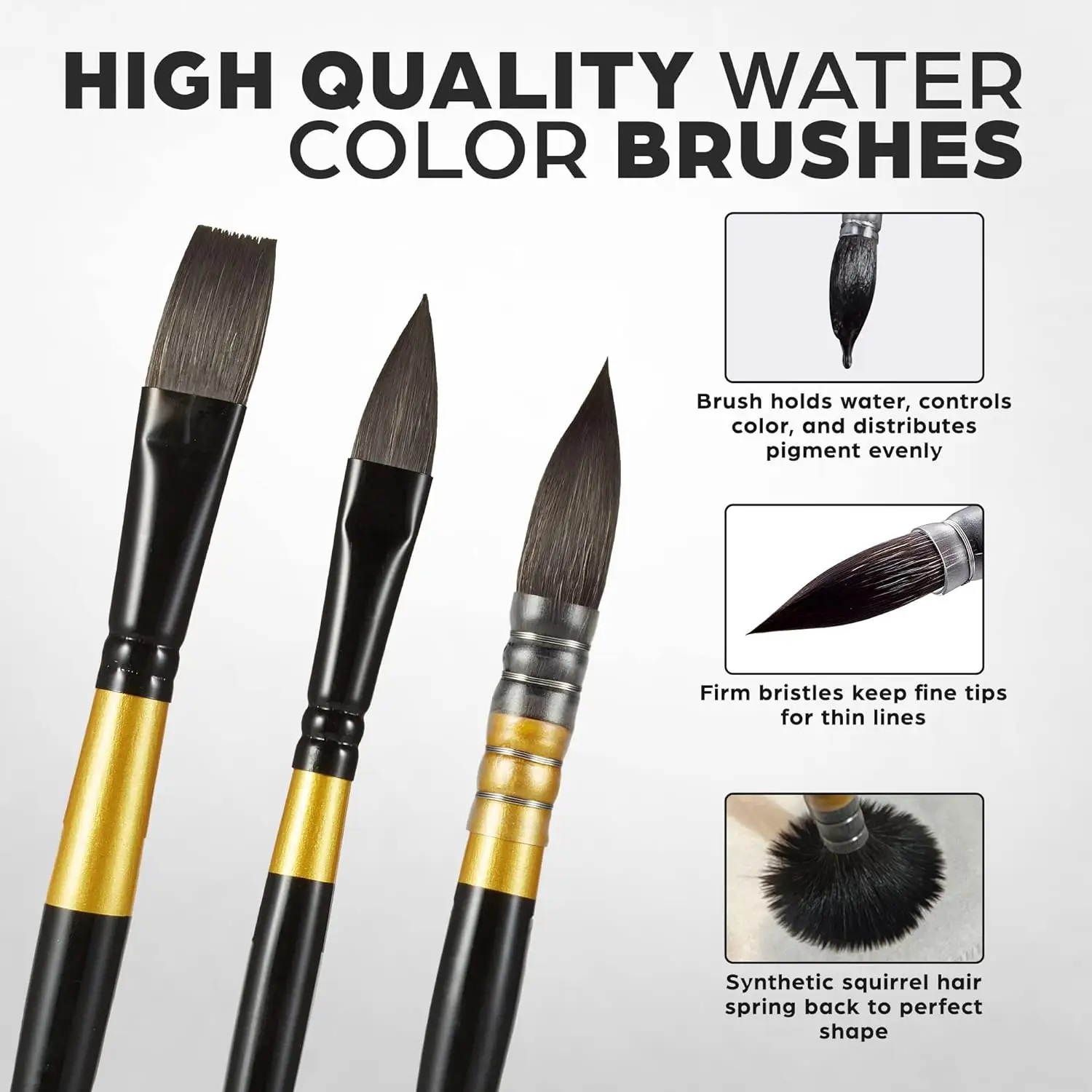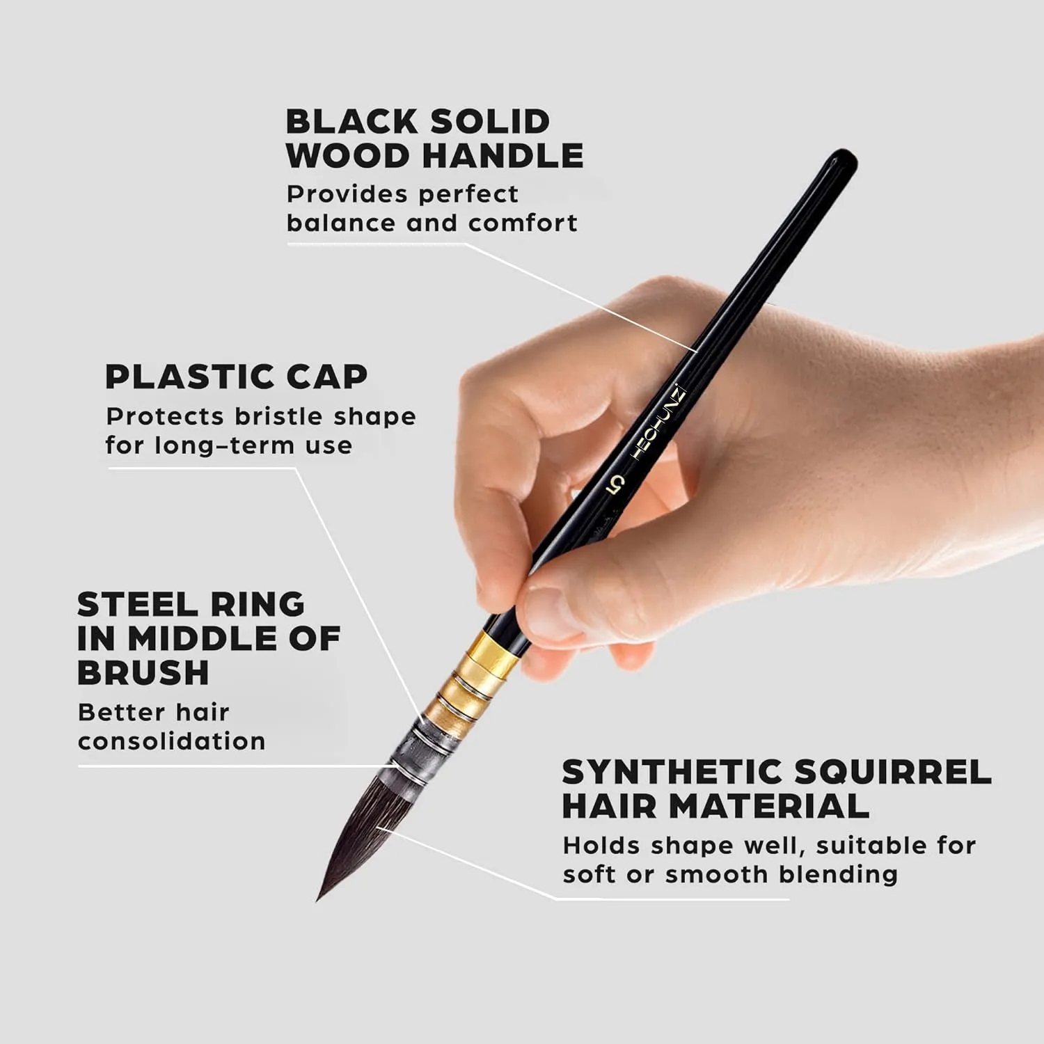 Soft and flexible synthetic squirrel bristles have great liquid holding capacity and ensure smooth paint flow; Good spring and point-forming ability offer better control.