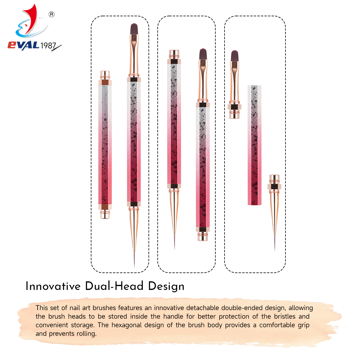 Made from kolinsky bristles, Eval acrylic brush set offers a smooth acrylic powder application.